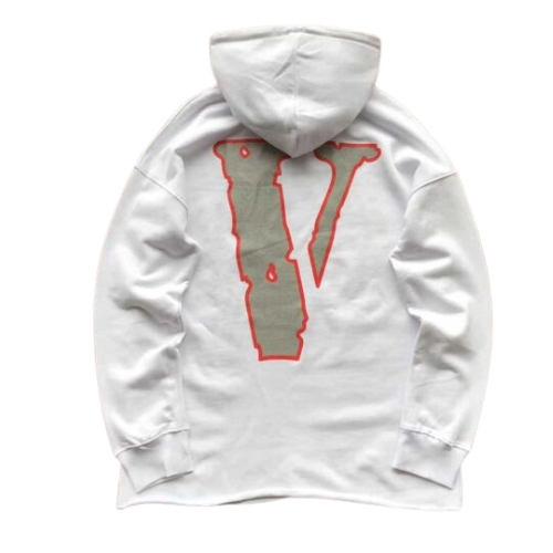 Crafted from a heavyweight cotton/poly blend, the hoodie offers all-day comfort with a structured fit. The crisp white base sets the stage for bold graphic prints — often featuring Juice WRLD’s name, custom artwork, or emotional lyric details — paired with VLONE’s signature “V” logo, typically featured loud on the back.