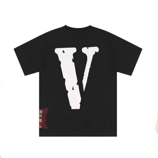 Crafted from premium 100% cotton, the black tee features bold “Dead Good Intentions” graphic artwork that reflects the darker tone of NAV’s music. The front typically showcases lyric-inspired or symbolic visuals, while the back features VLONE’s iconic oversized “V” — co-branded and hard to miss. The minimalist color scheme makes it versatile, while the message hits deep for those who live in that in-between space.